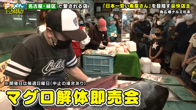 そんな『激安王』の杉本社長がお客さんに喜んでもらうためのさらなる仕掛けが『マグロの解体即売会』。この日は50kgの大きな本マグロがお客さんの目の前で豪快に捌かれました。
