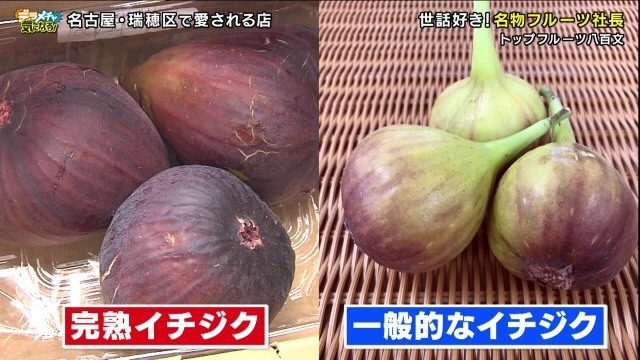 また、愛知県で盛んに栽培されているいちじくにも鈴木社長のこだわりが。トップフルーツで扱っているいちじくは一般的なものに比べ黒々としています。