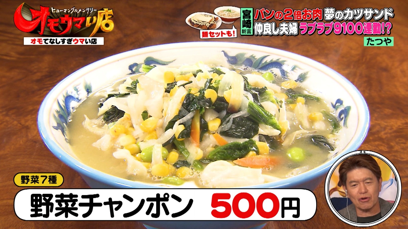 豚骨と鶏ガラのスープで作る「野菜チャンポン(500円)」は、7種の野菜がたっぷり入っています。見取り図のリリーさんも、「うわー美味しそう!」と食欲をそそられたようです。