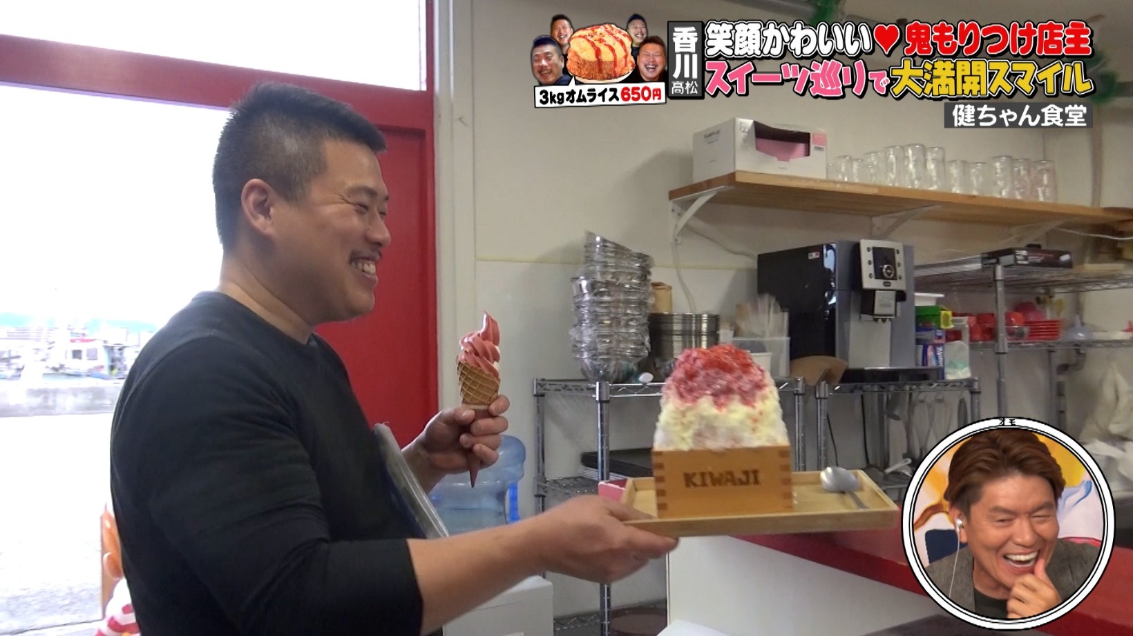スイーツが大好きな店主に密着中、連日のようにスイーツ巡りに連れて行ってくれました。甘いものを頬張り満面の笑みを浮かべる店主に、スタジオからは「かわいい!」と笑いが起こります。