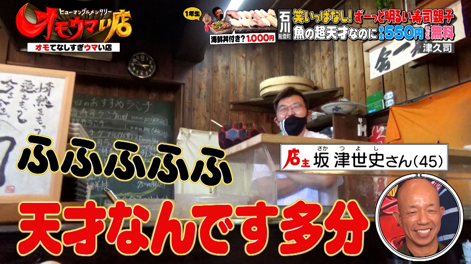 石川県能登町「津久司」ずっと明るい寿司親子に密着!新鮮地魚の握り12貫ランチ!『オモウマい店』