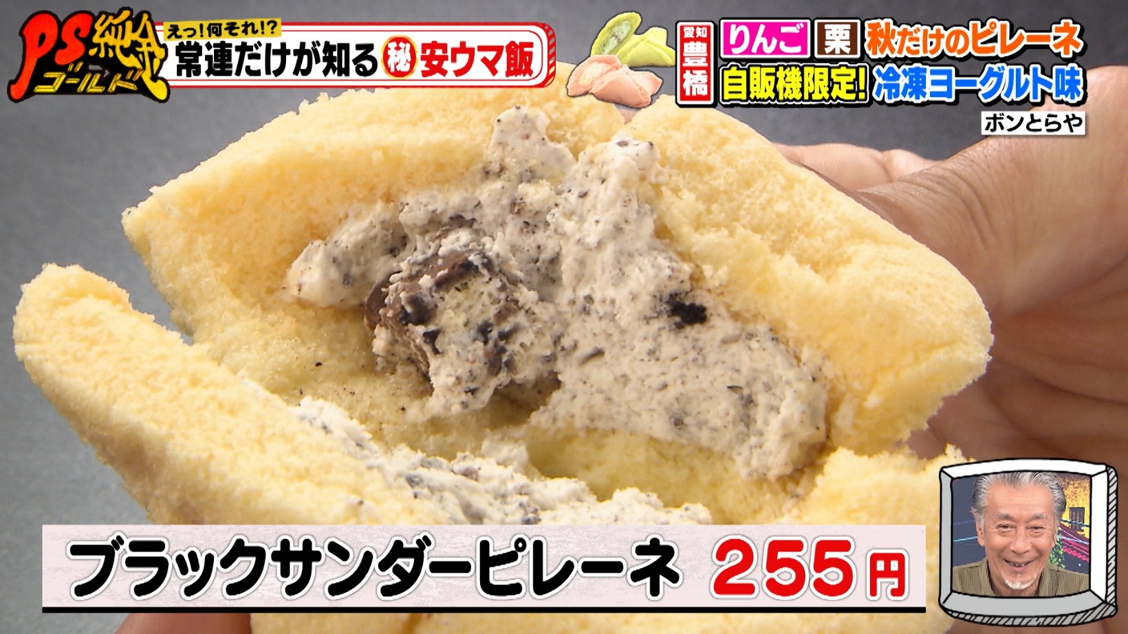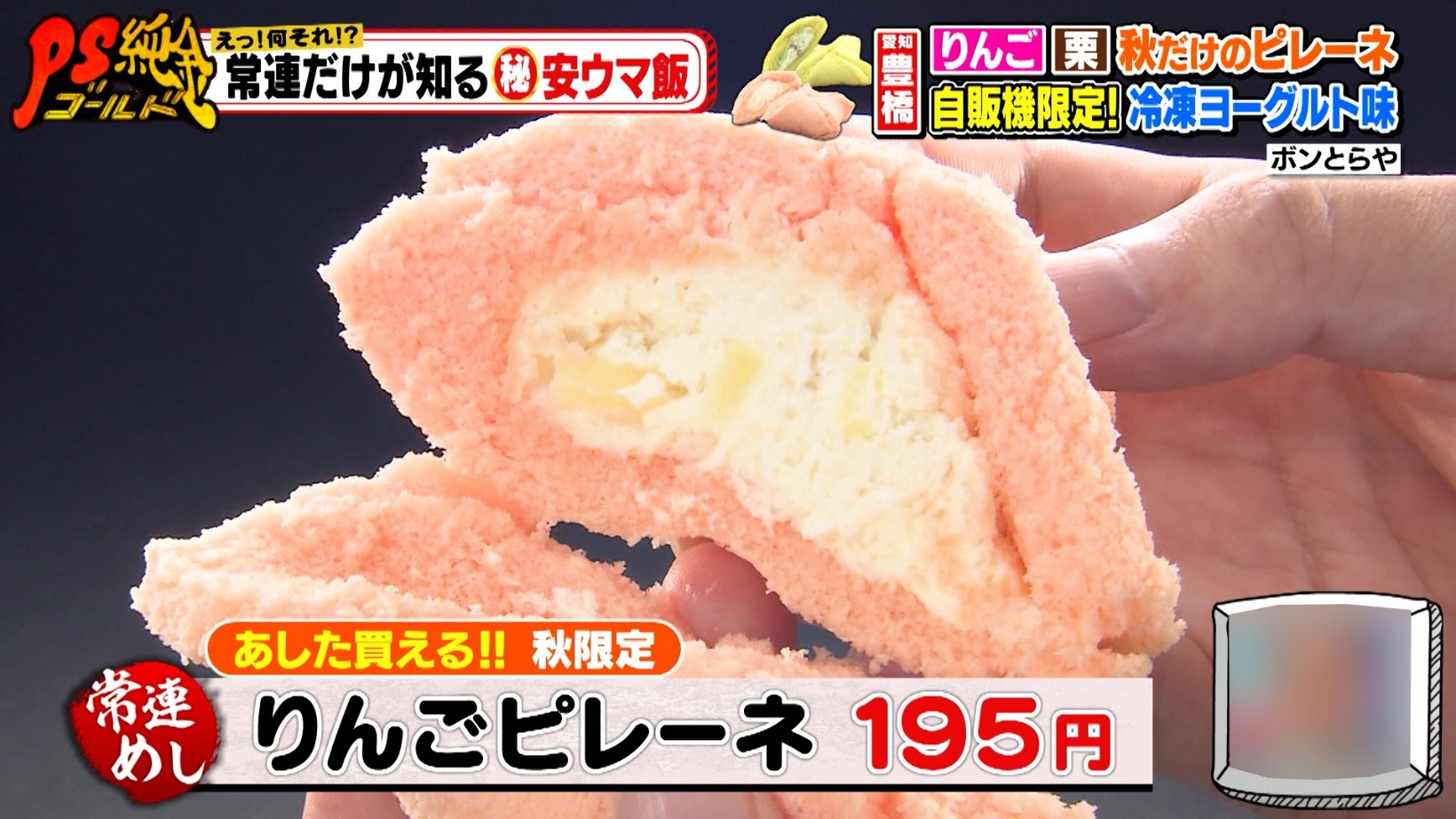 秋限定で「りんごピレーネ(195円)」なども販売されるそう。スタジオゲストのパンクブーブー・黒瀬純さんも、種類豊富なピレーネに驚きます。