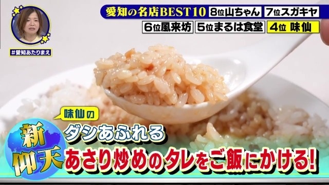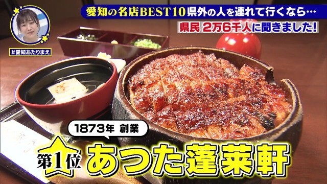 10月からのレギュラー放送に先立って9月3日に放送された特番では、愛知県民が選んだ「県外の人をあたりまえに 連れて行く」名店BEST10を大発表! 愛知県民の80%以上が知らない名店の隠れメニューや裏技も大公開します。