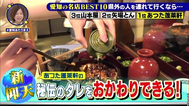 愛知県民が県外の人を連れて行きたい名店ベスト10、第1位に選ばれたのが『あつた蓬莱軒』。創業149年、『ひつまぶし』発祥の店とも言われるウナギ界の名店中の名店です。