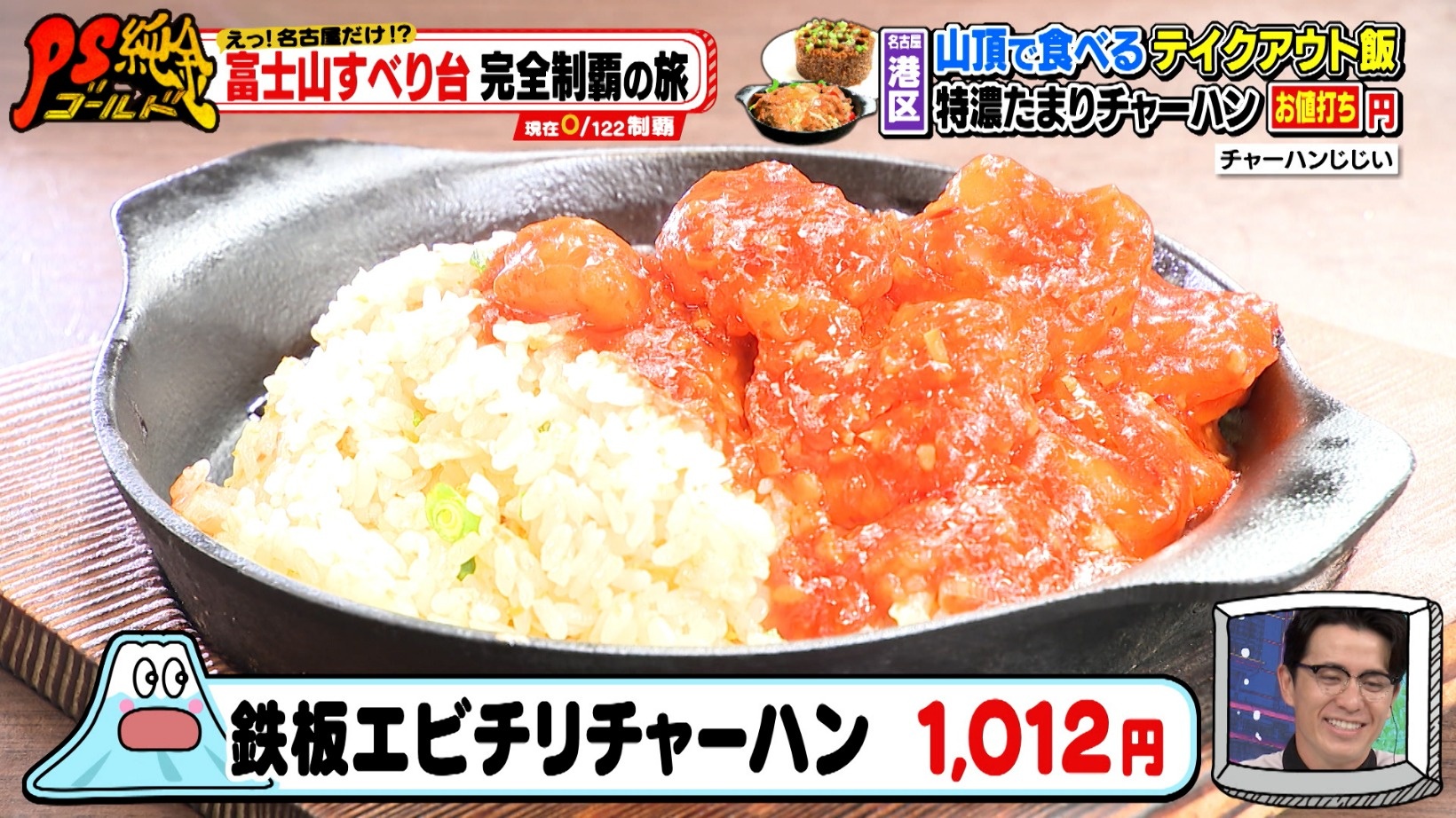焼き肉のタレで炒めた牛肉と5種類の野菜をチャーハンの上にかける「牛肉の黒胡椒鉄板チャーハン(1,078円)」や、「鉄板エビチリチャーハン(1,012円)」も人気メニューです。ゲストのスピードワゴン・井戸田潤さんは、「夢の食べ物だよ!」とテンションアップ!