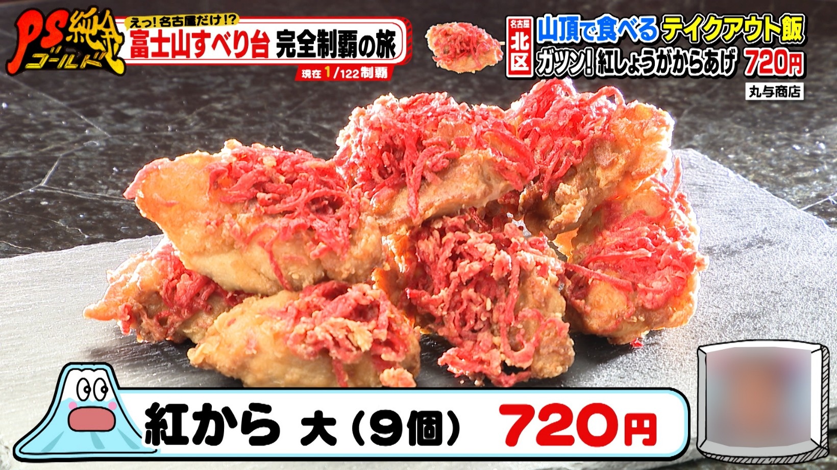 表面に紅しょうがをあえて揚げる「紅から 大(9個720円)」も試食した内山さん。ガツンと効いた紅しょうがと唐揚げの相性を絶賛するのでした。