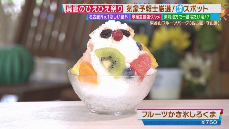 さらに、東谷山のふもとにある「東谷山フルーツパーク」では、体温を下げる効果のある夏の果物など様々なフルーツを販売。ひえひえの『フルーツかき氷しろくま』(750円)もオススメです!
