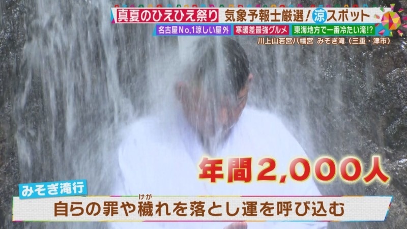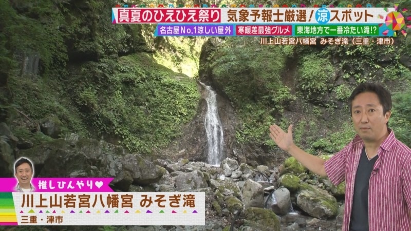 全国放送「ゴゴスマ」を担当している、気象予報士歴18年の沢朋宏アナウンサーがオススメするひえひえスポットは“滝”。滝の水しぶきが蒸発するとき、周囲の熱を吸収して温度を下げる“気化熱”が起こりやすいため、滝の近くは涼しいそう。