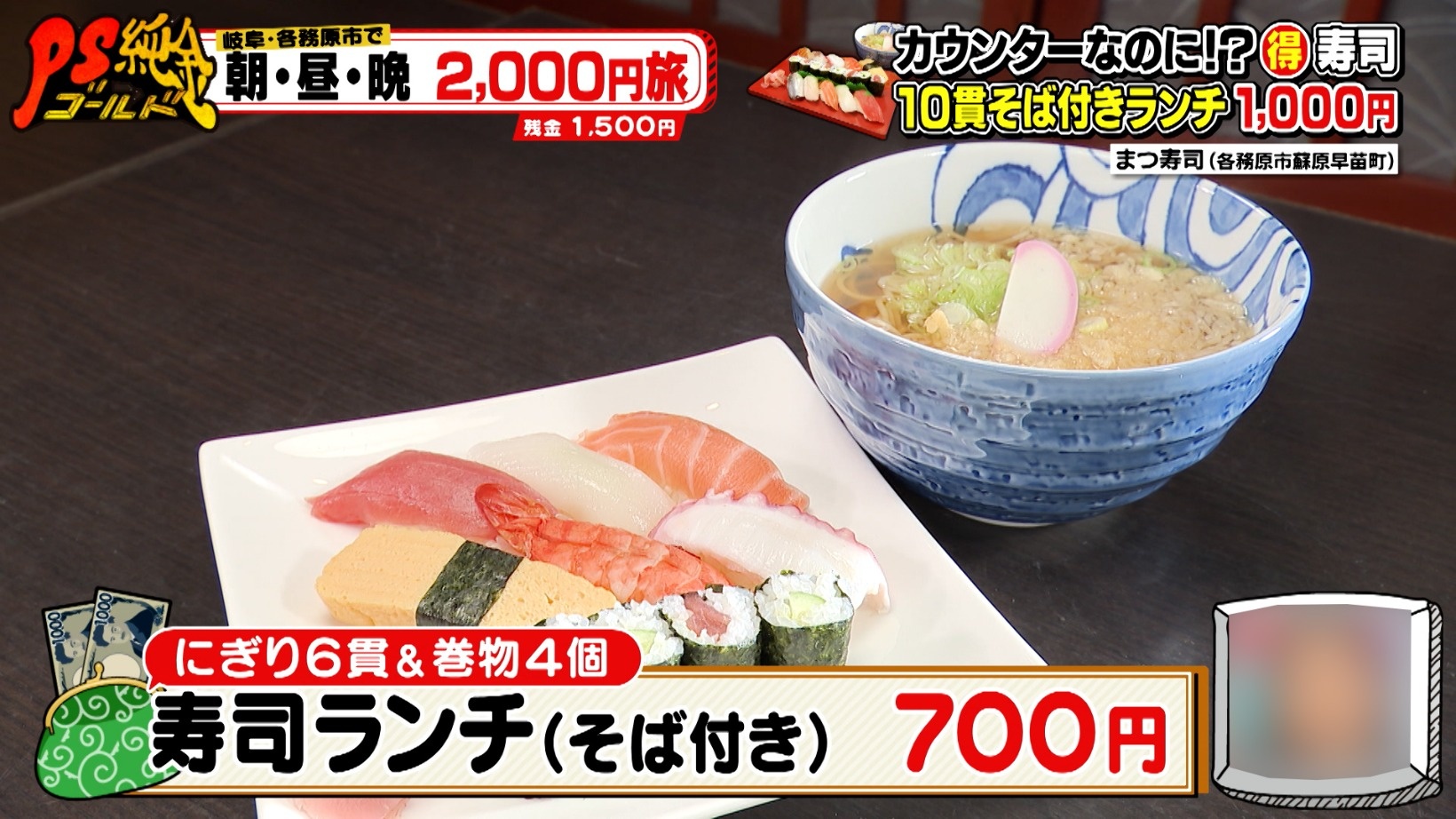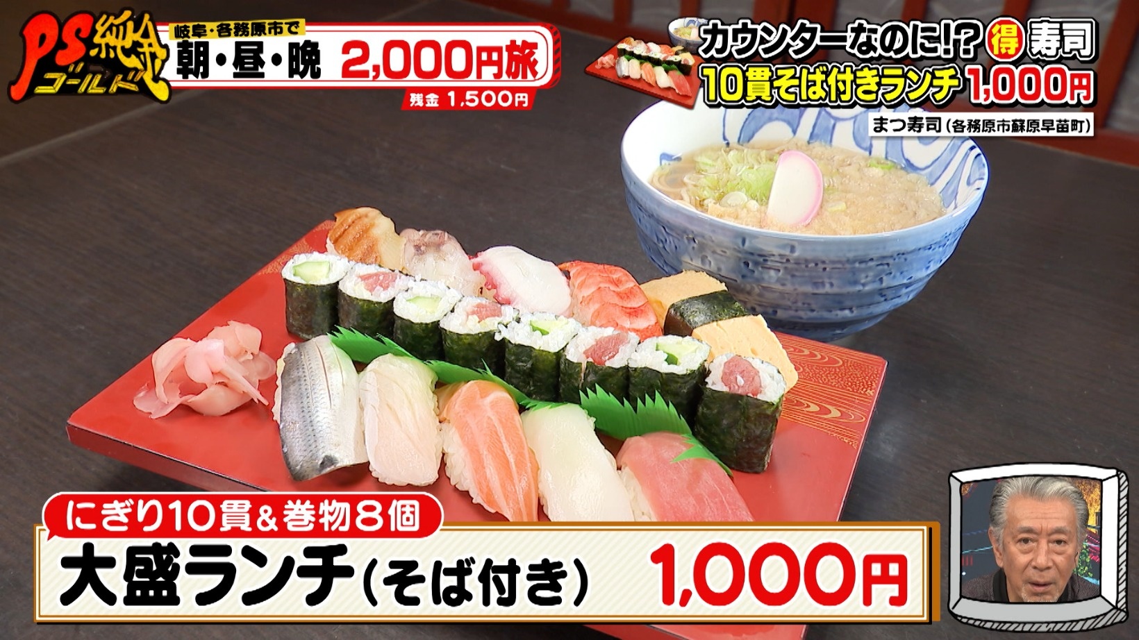 にぎり10貫と巻物8個を贅沢に楽しめる「大盛ランチ」はそば付きで何と1,000円!あまりのお得さにスタジオメンバーも驚くのでした。