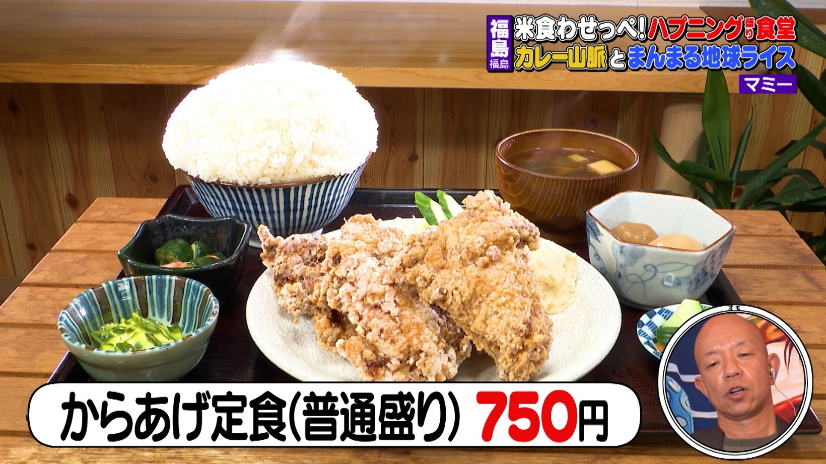 特製ダレで漬け込んだ鶏肉を使用した「からあげ定食(普通盛り・750円)」。ゲストの三浦獠太さんは、「ウマそう!」と食欲をそそられたようです。