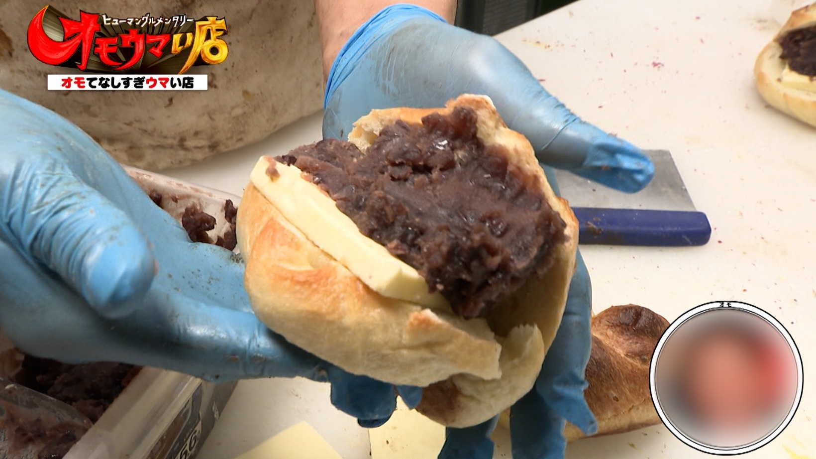 「あんバターサンド(420円)」もボリューム満点の一品です。ベーグル生地に挟んだたっぷりのバターとあんこを見て、ゲストの瀧本美織さんは「(たっぷり)入れますね!」と驚きます。