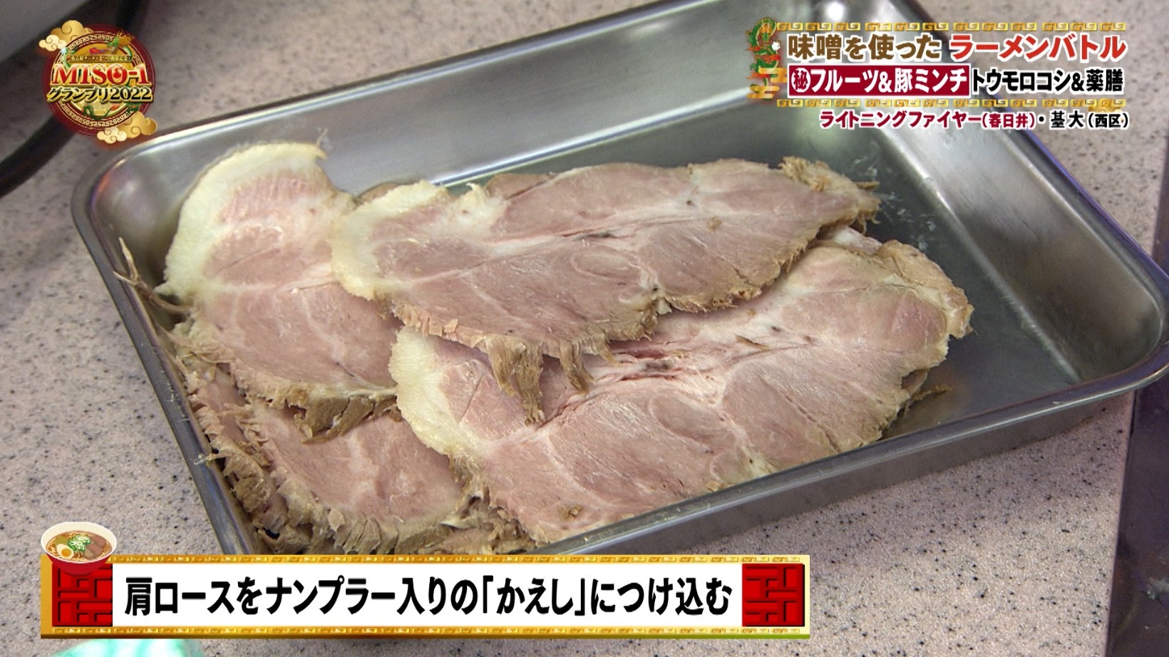 お店の名物である巨大チャーシューを使って勝負に挑む『ライトニングファイヤー』。店主は、「食べ応えもありつつ、さっぱりした感じで、でも物足りなくない。すべてにおいてバランスの良いラーメンが出来上がっていると思います」と自信を見せます。