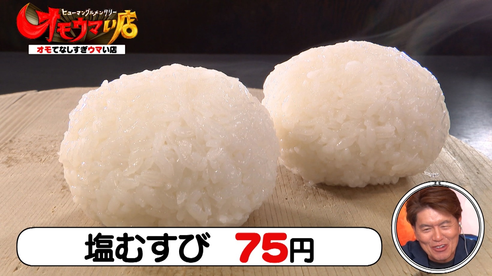 炊きたてアツアツの状態で握る「塩むすび(75円 ※2023年から100円)」の味付けは塩のみ。店内でおいしそうに食べるお客さんに、ゲストの櫻坂46・山﨑天さんも「おいしそう!」と食欲をそそられたようです。