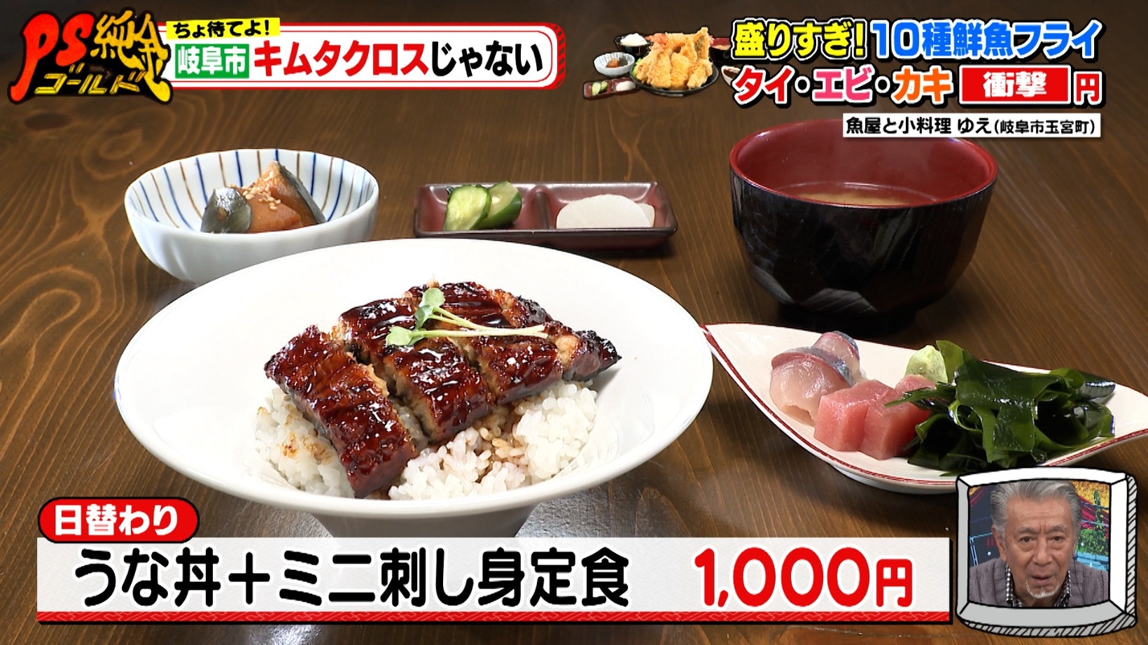 キンメダイ、ブリ、マグロ、赤エビが乗った日替わりメニューの「ゆえのまかない海鮮丼」は980円!そのほか、「うな丼+ミニ刺し身定食(1,000円)」などもリーズナブルに味わえます。