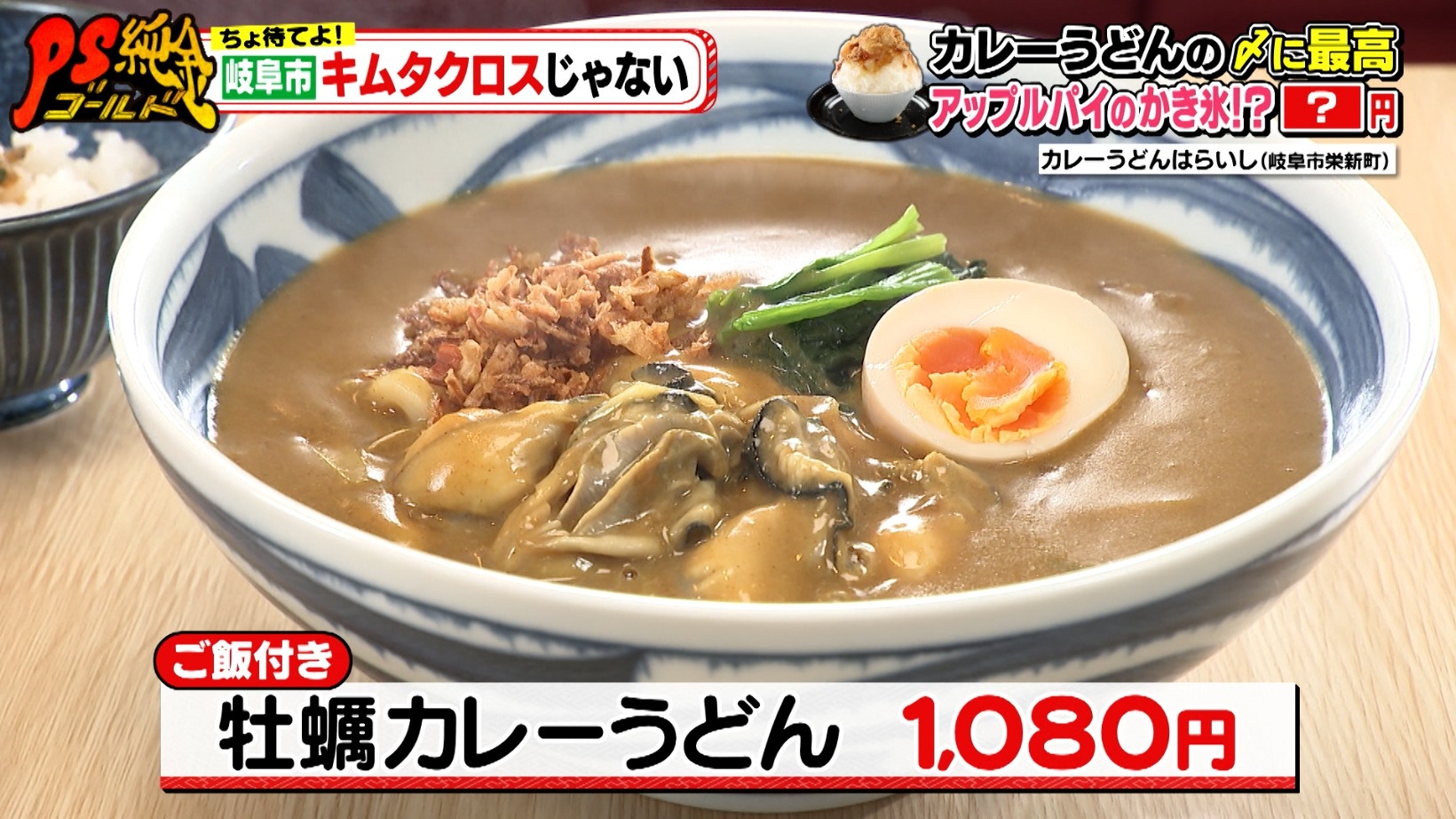 岐阜県岐阜市『カレーうどん はらいし』大振りなカキが4個も!牡蠣カレーうどん1,080円