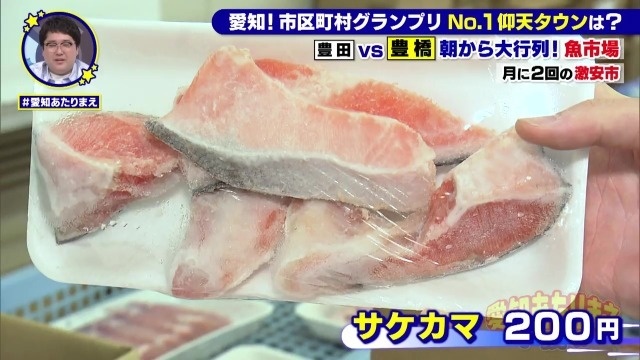 その中でもこの日の目玉商品となっていたのが1パック200円のサケカマでした。