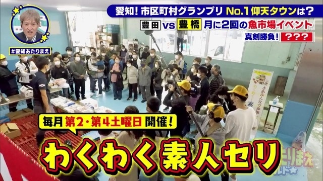所変われば品変わる。同じ愛知県の中でも市区町村ごとに全然違う仰天の風習やサービス、グルメ、スポットがたくさん!豊田市で市民を夢中にする「ケンさん」の意外な正体とは?さらに豊橋市では大人はもちろん子どもも新鮮な魚介類を激安で競り落とすという魚市場に潜入調査。