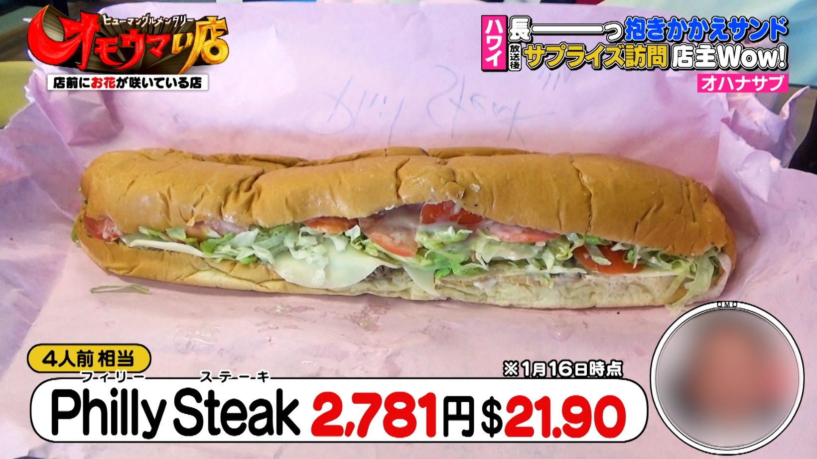 長さ約40cmもある巨大サンドイッチが名物の『Ohana Sub(オハナサブ)』。川添Dが店へ再訪すると「元気にしてた!?」と店主が温かく迎えてくれました。番組放送後、店に放送を見たという日本のお客さんが来てくれたそうです。