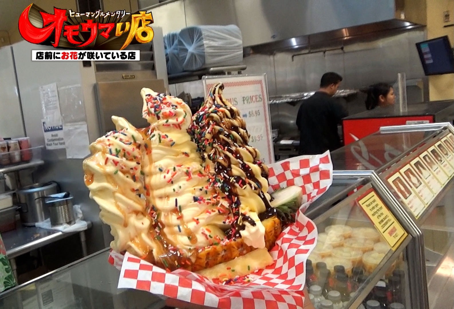 総重量約1㎏のソフトクリーム「Pineapple split(パイナップルスプリット)」が登場すると、スタジオから歓声が上がります。