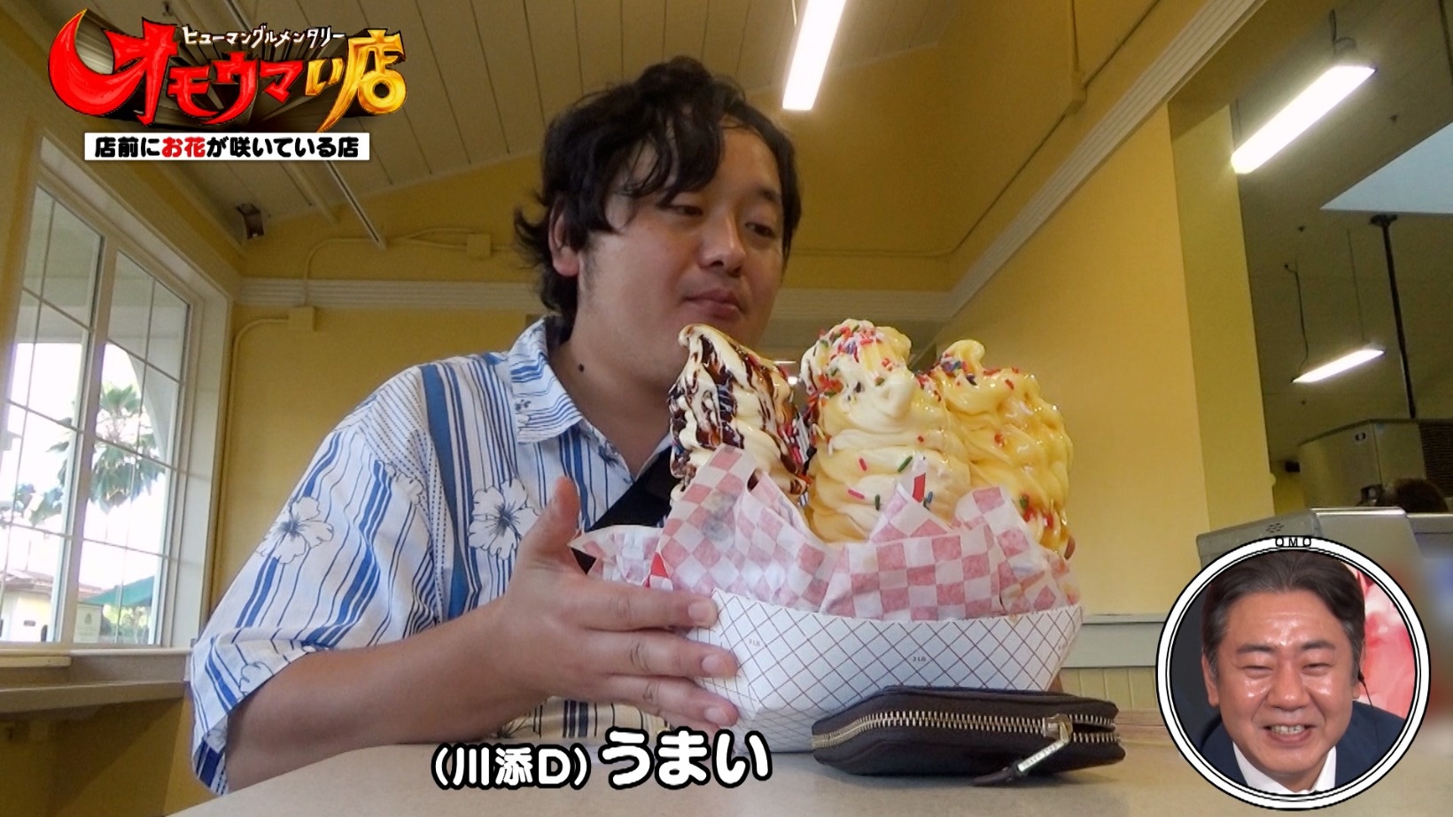 6人前相当もある巨大なソフトクリームを1人で食べる川添Dに、店内のお客さんも驚いた様子でした。