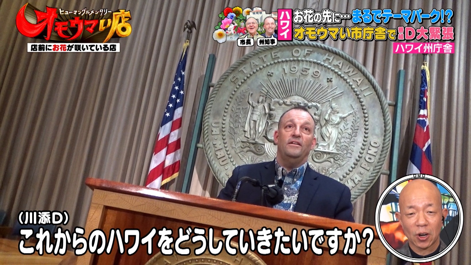 続いて、ラジオ局の取材に同行してハワイ州庁舎も訪れることに。こちらでは州知事の会見が行われており、なんと川添Dも州知事に質問します!「これからのハワイをどうしていきたいですか?」と番組とは関係のない質問をする川添Dに、スタジオ一同大爆笑。小峠さんは「聞く立場じゃないだろ!」とツッコミを入れるのでした。