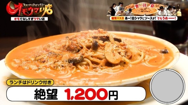 ランチタイムに行列ができるほど人気の『IVO ホームズパスタ 新宿店』では、お客さんの約6割が注文するというパスタが。その名も「絶望」。トマトソース、生クリーム、自家製ミート、キノコ類をふんだんに煮詰めたソースのパスタです。「絶望」のネーミングはパスタソースが服に飛ぶからだと盛り上がるスタジオですが、実際は「細かく切られたオリーブの黒さから」とのことでした。
