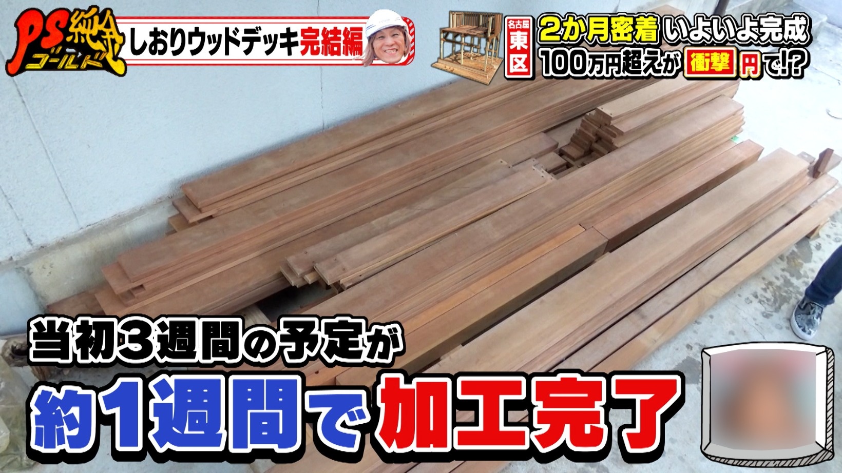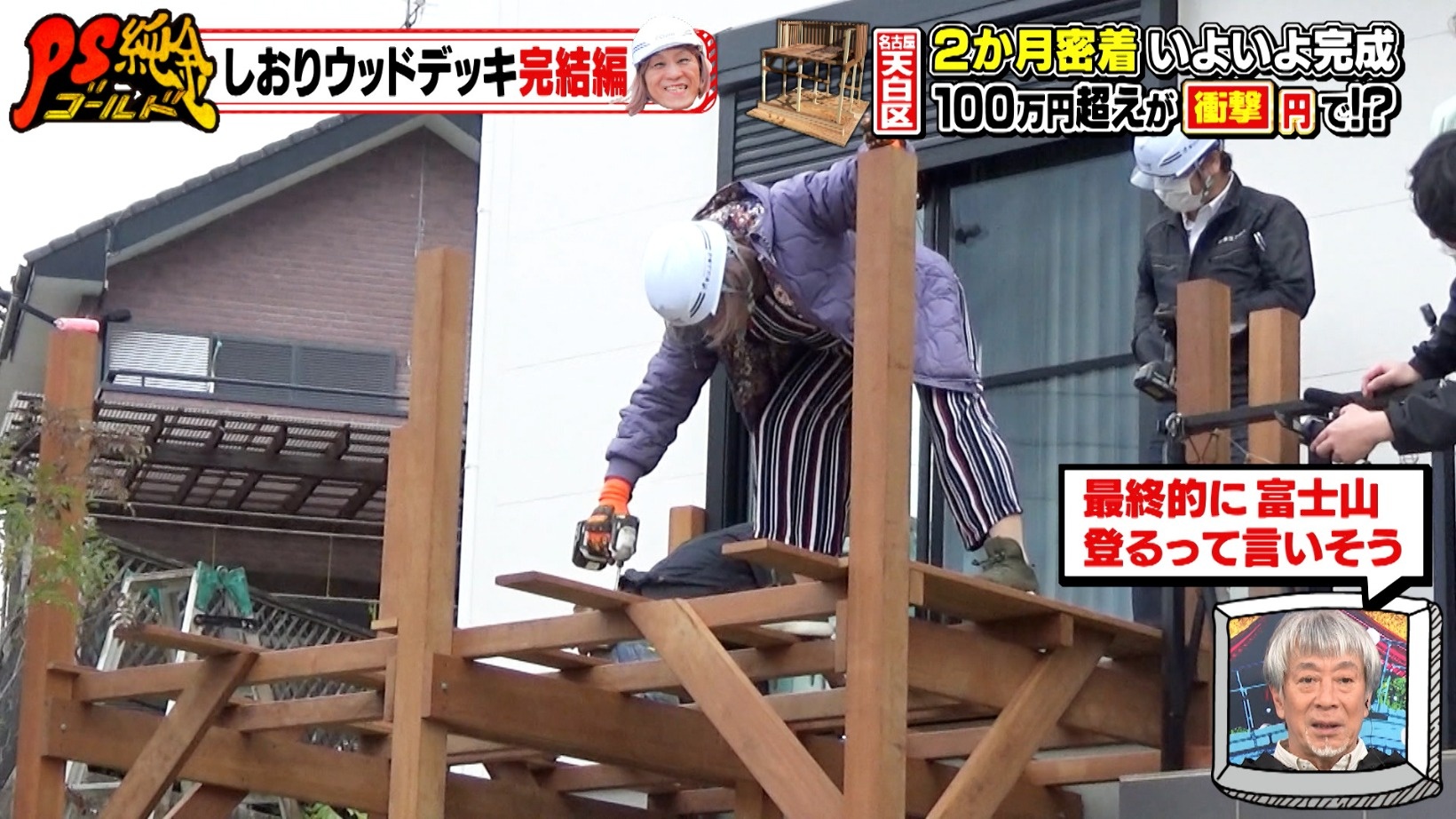 『PS純金(ゴールド)』ではおなじみ、スーパーヒューマン・しおりさん。以前放送された「しおりが行く!出張お悩み解決」の企画で、ウッドデッキの基礎工事が完了。今回は、完成までの様子に密着しました。