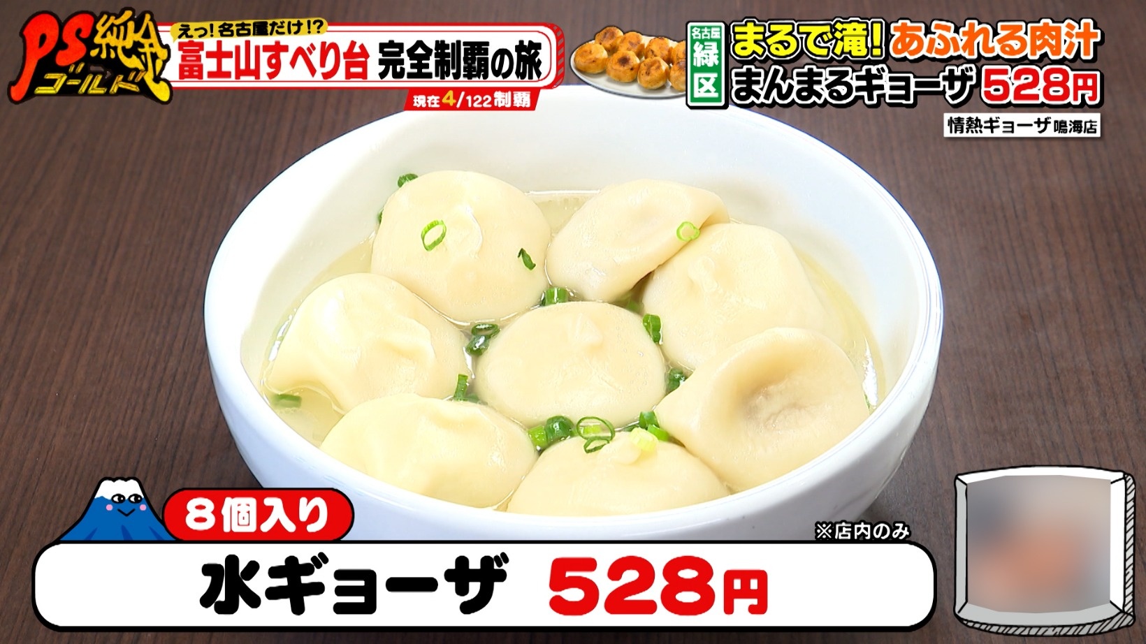 トロトロ卵とじの「スープギョーザ(4個入り・528円)」は、シメにオススメ。常連さんから「ギョーザの中にスープも放り込むとまた2度おいしい」と好評です。さらに、白米と合わせた「スープギョーザ雑炊」のアレンジに、スタジオからは歓声が上がるのでした。