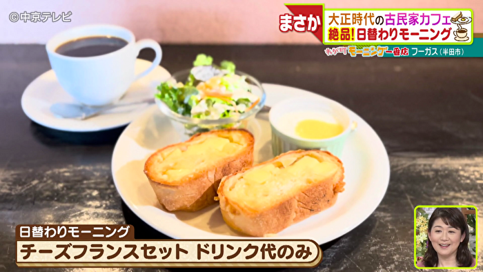 取材した日の日替わりモーニングはチーズフランスセットです。