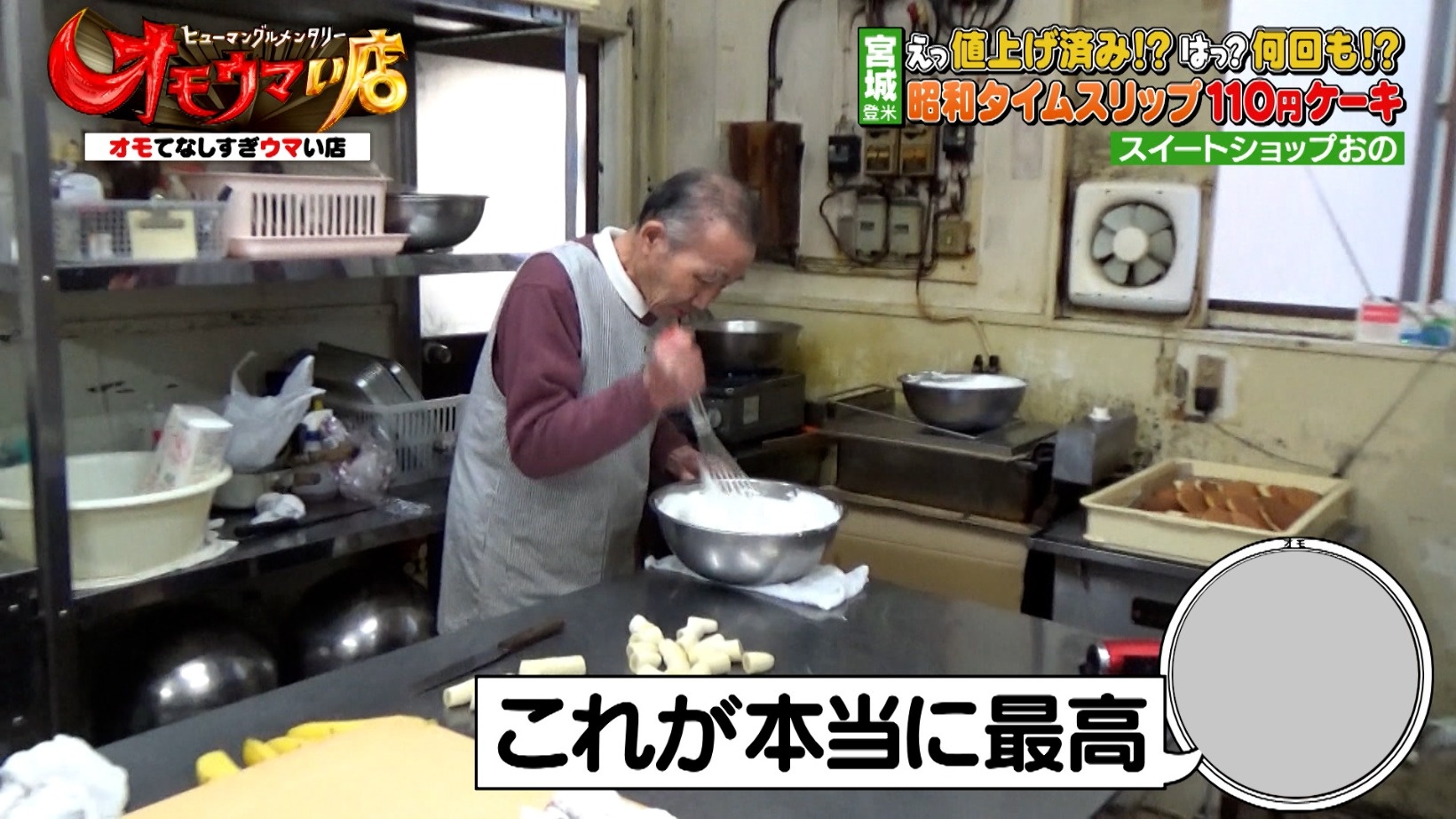 店主は日々、約10種類ほどのケーキを手作りしているのだとか。穏やかな話し方とは裏腹に、生クリームを豪快にホイップする店主の姿がゲストの竹中直人さんのツボに入ったようで、「本当に最高」とコメントします。
