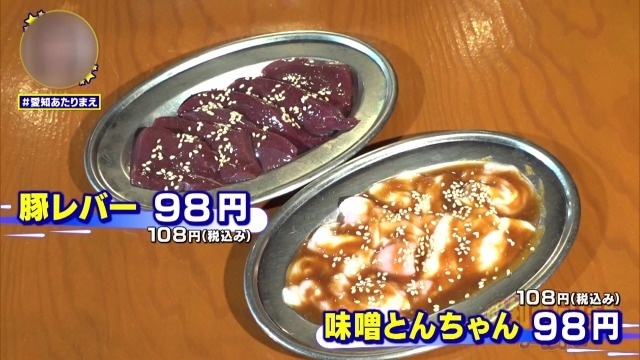 「徳川ホルモンセンター」の名物が激安で食べられるホルモンの数々。名古屋めしの一つとしても有名な豚のホルモン「味噌とんちゃん」と新鮮そのものな「レバー」はどちらもなんと100g98円(税込108円)で提供!スーパーで買うよりも安い値段!?