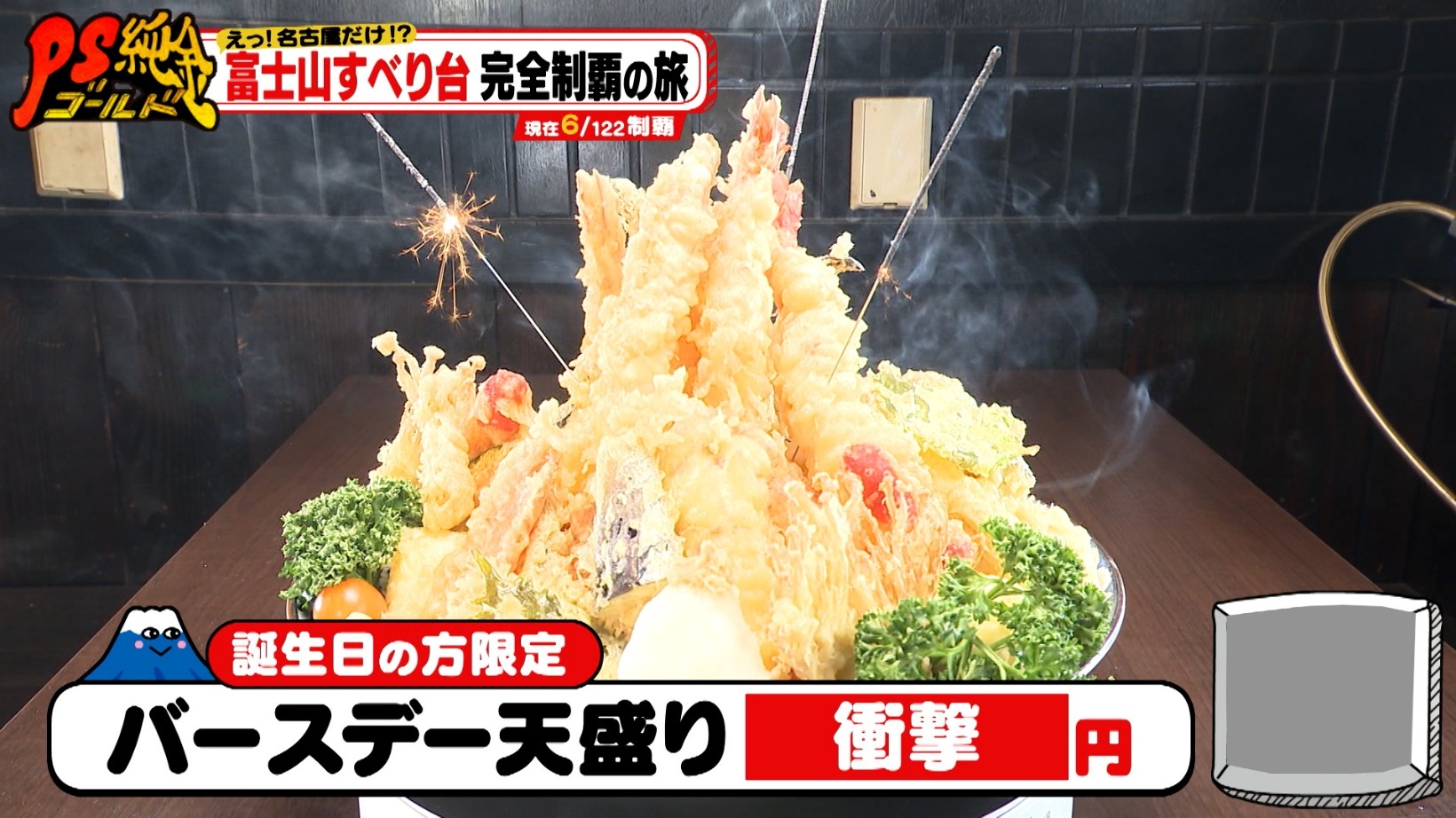 誕生日を迎えるお客さんの年の数の天ぷらがのっており、今までの最高記録は64個なのだとか。スタジオ一同が思わず笑ってしまうほど、衝撃的な「バースデー天盛り」の値段とは!?