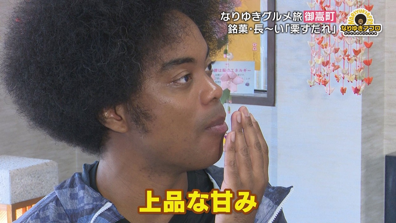 金曜日の人気コーナー、アフロヘアーがトレードマークの副島淳くんがリポートする『なりゆきアフロ』は、東海地方の125市町村を巡り、そこで出会った人に「町のおいしいもの」を聞き、その場所へ行って味わう“なりゆきグルメ旅”です。