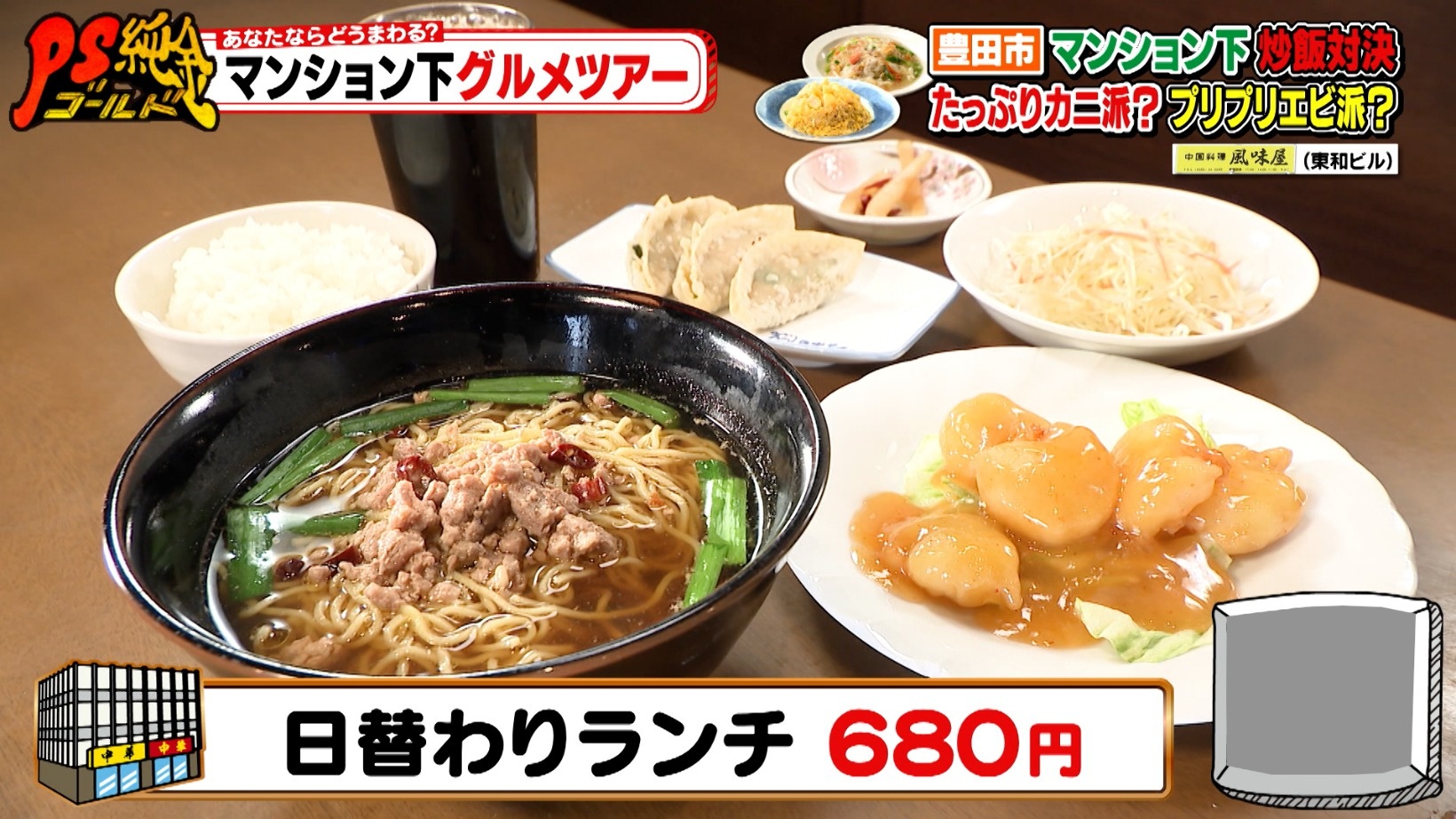 『風味屋』の「日替わりランチ」は、台湾ラーメンにライス、揚げ餃子、エビマヨが付いてボリューム満点。そのお値段は、なんと680円!?この安さにはスタジオの高田さんも、驚きの声を上げます。