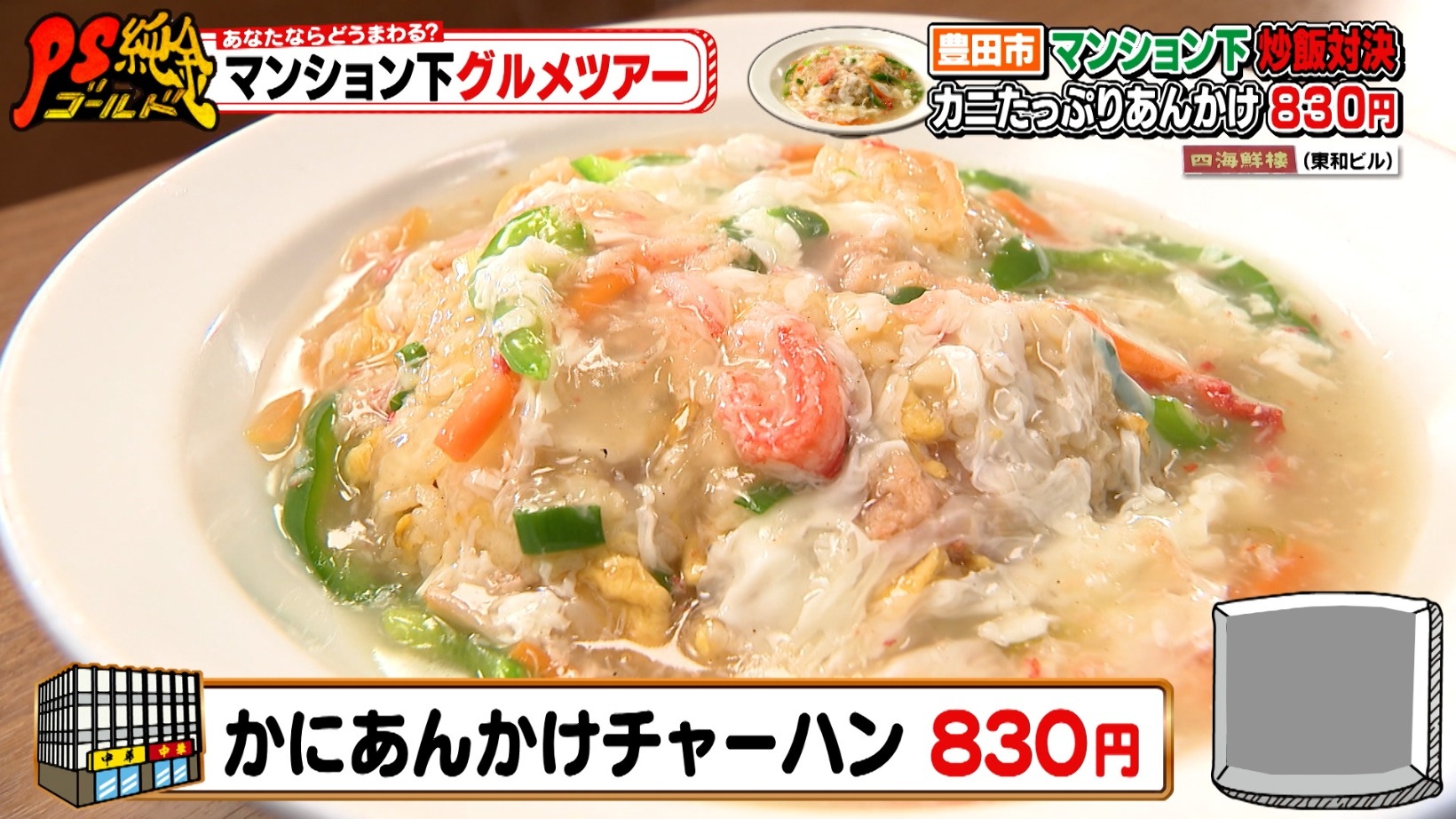 まずは『四海鮮樓』の「かにあんかけチャーハン(830円)」を実食。ひと口食べた内山さんは「ご飯がちゃんとパラパラで、餡がトロトロ。この辺で間違いなく1番だね」とそのおいしさに唸ります。