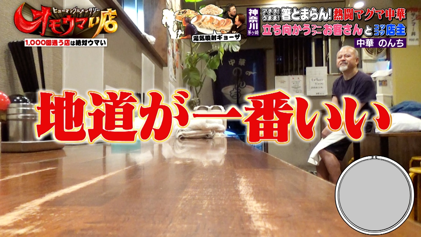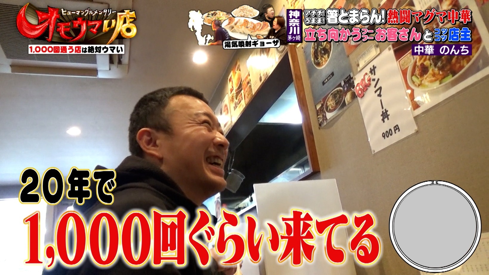 そもそも今回は、「1,000回以上通ったお店」という企画。番組スタッフは街頭で聞き込みしますが、「1,000回」のハードルが高くなかなか該当する店が見つかりません。そんな中、『中華 のんち』という店について熱く語ってくれる男性に出会います。結局、「1,000回以上"通いたくなる店"」として『中華 のんち』を取材することに。