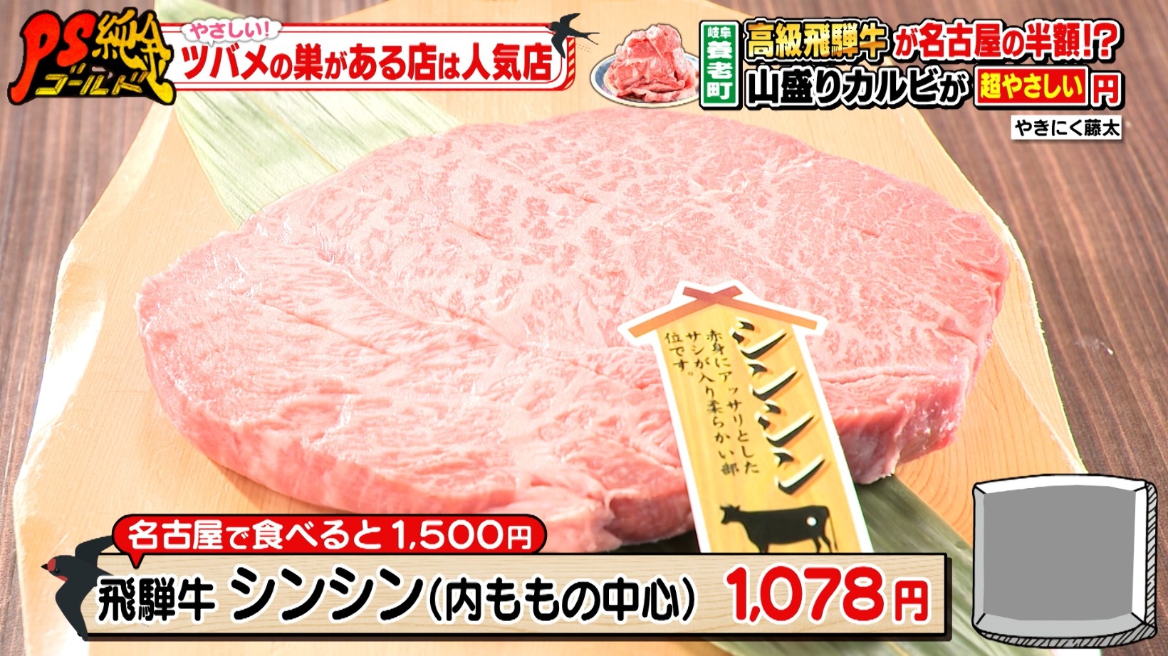 内ももの中心にあたる部位「飛騨牛 シンシン(1,078円)」や肩甲骨の近くの「飛騨牛 ハネシタ(1,650円)」など、希少部位もお安く味わえるそう。