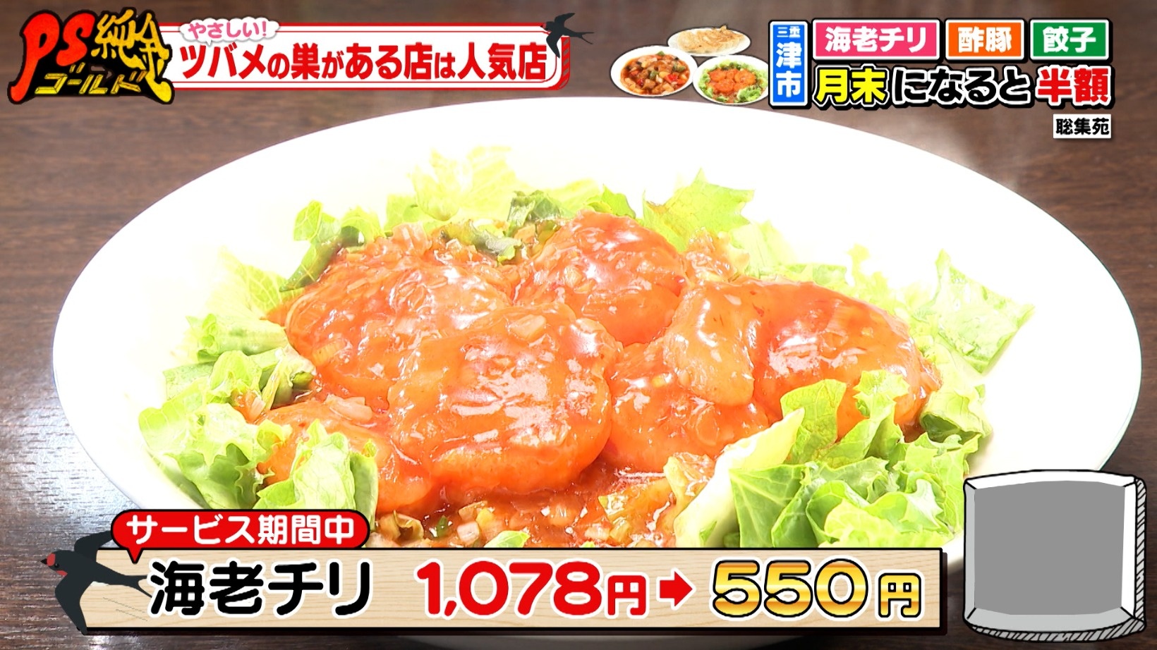 割引券(※サービス期間の約10日前から配布)を持っていると、料理がおよそ半額になるサービスも大好評!通常1,078円の「海老チリ」が550円で味わえるなど、お財布にやさしい価格になります。
