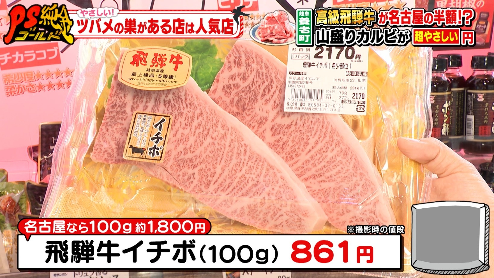 『肉の藤太』では「飛騨牛イチボ(100g 861円)※撮影時の値段」など、ブランド牛の肉を格安に購入できます。店舗裏に牛舎を所有し、飼育・加工・販売を自社で行っているため市価より安く提供できるそう。