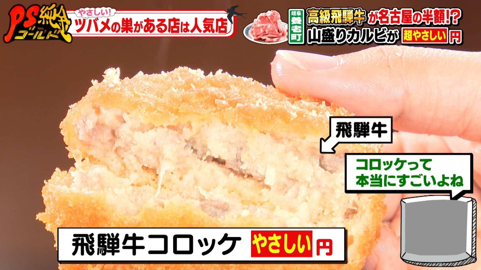精肉店がつくる「飛騨牛コロッケ(150円)」も大人気!1日に500個売れることもあるのだとか。