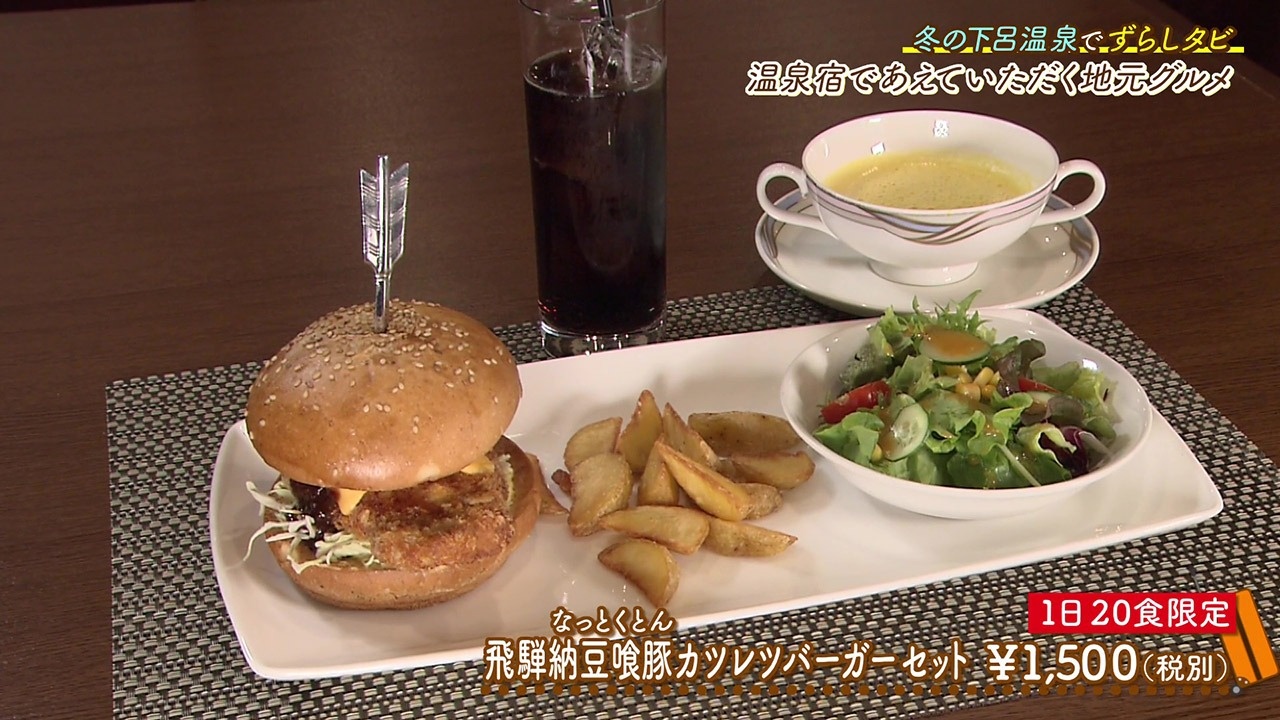 また、こちらは1日20食限定の『飛騨納豆喰豚(なっとくとん)カツレツバーガーセット』(税別1,500円)。