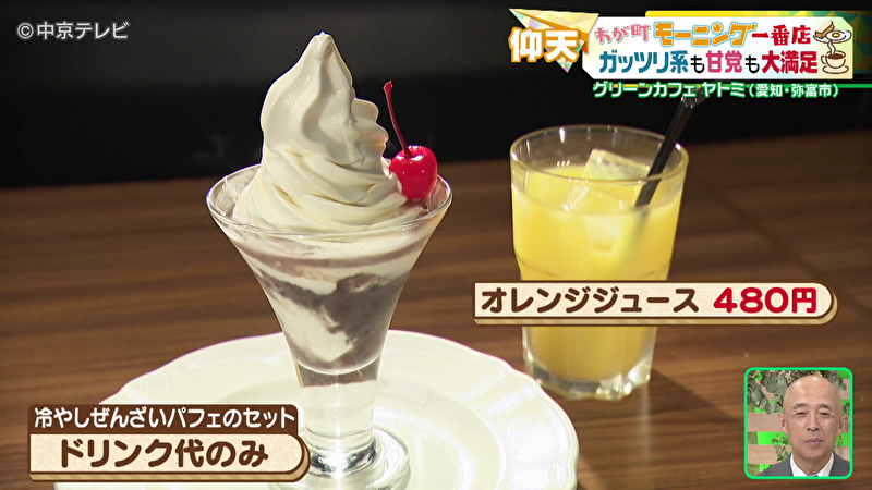 松原アナウンサーが注文したのは、冷やしぜんざいパフェのセット。