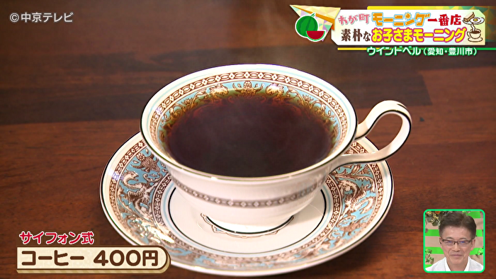 「ウインドベル」は、サイフォン式コーヒーを提供している喫茶店です。サイフォン式とは、コーヒーの淹れ方のひとつ。柔らかくすっきりとした味わいが特徴です。