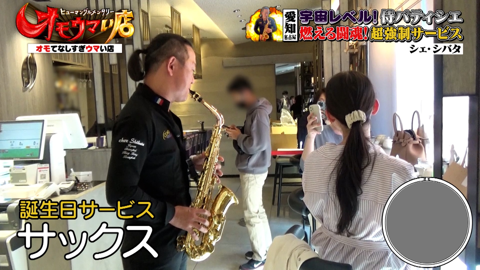来店したお客さんのお誕生日に、ケーキにキャンドルをサービスする柴田シェフ。さらに、お客さんの目の前でサックスを演奏する様子に、小峠さんは「面白いね~」ととコメント。