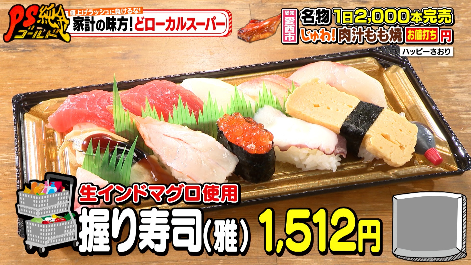 愛西市「ハッピーさおり」1日2,000本完売!名物とりもも焼&名古屋市名東区・バナナ抱え放題が324円!?東海エリアの激安スーパー特集『PS純金(ゴールド)』