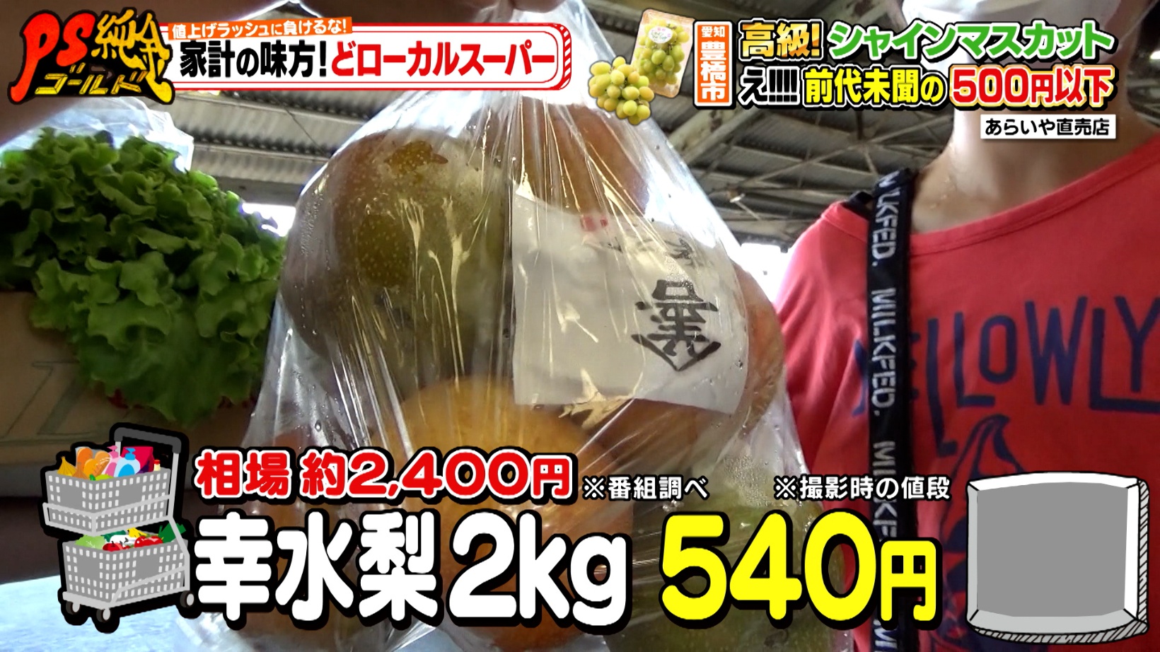 幸水梨2㎏が540円など、相場よりかなり安い値段で売られています。