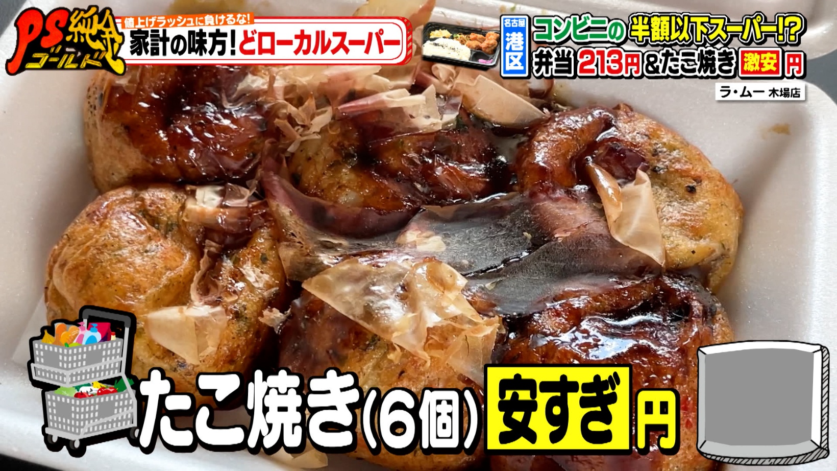 番組HPや配信動画では、東海エリアのローカルスーパーを詳しく紹介しています。『ラ・ムー木場店』のたこ焼きの価格もチェックしてみてくださいね。