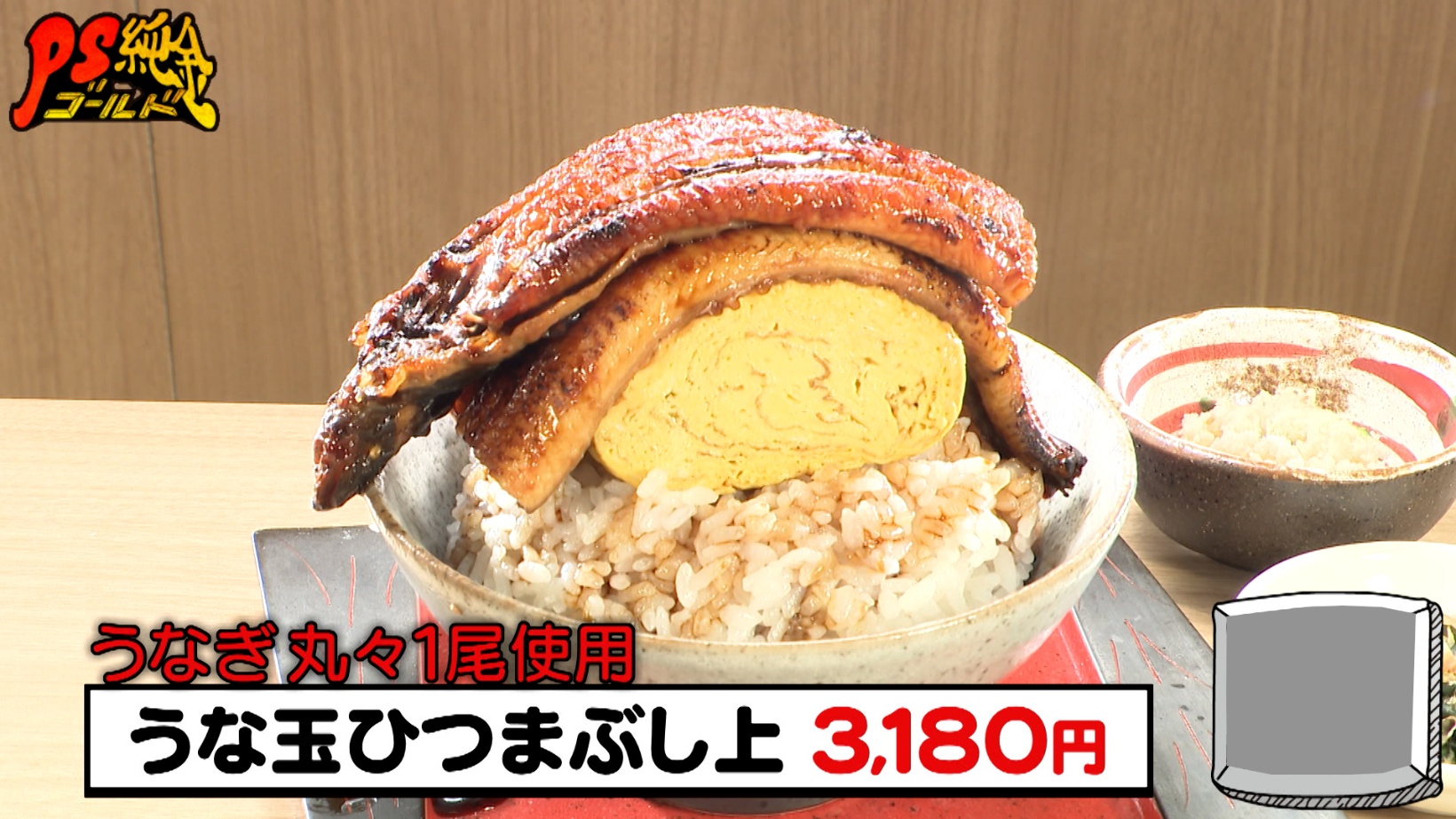 うなぎを丸々1尾使用した「うな玉ひつまぶし上(3,180円)」は、器からうなぎがはみ出るほどボリューム満点!