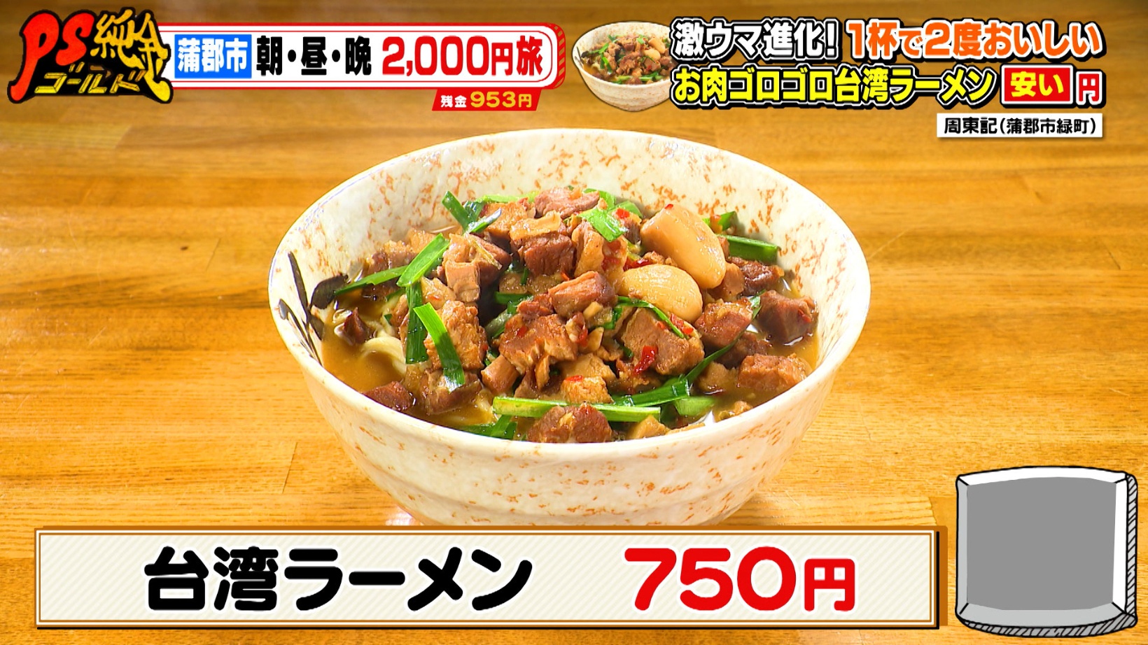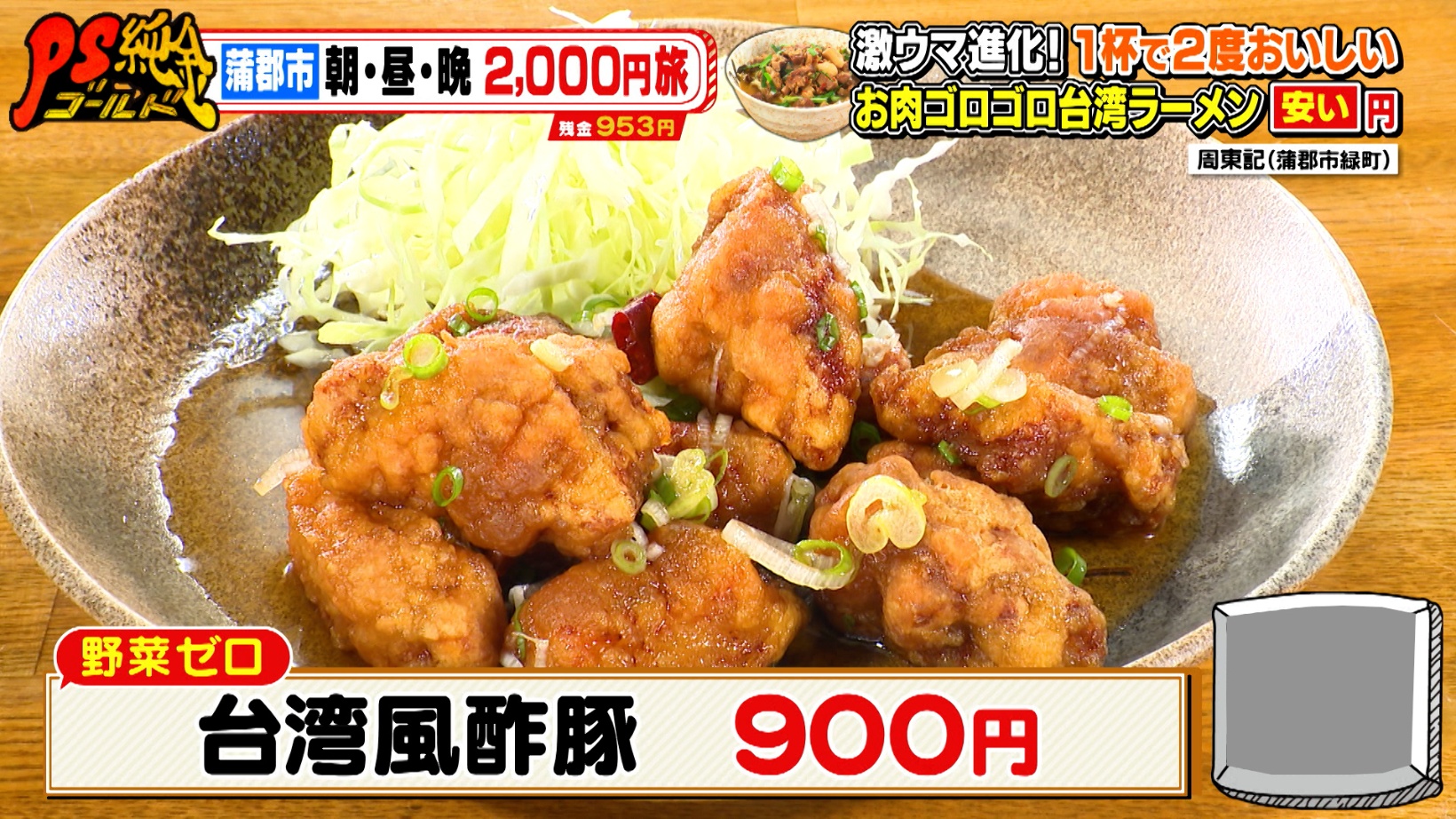 蒲郡市・朝昼晩2,000円旅!海鮮フードコートのワンコイン天丼&お肉ゴロゴロ台湾ラーメン『PS純金(ゴールド)』