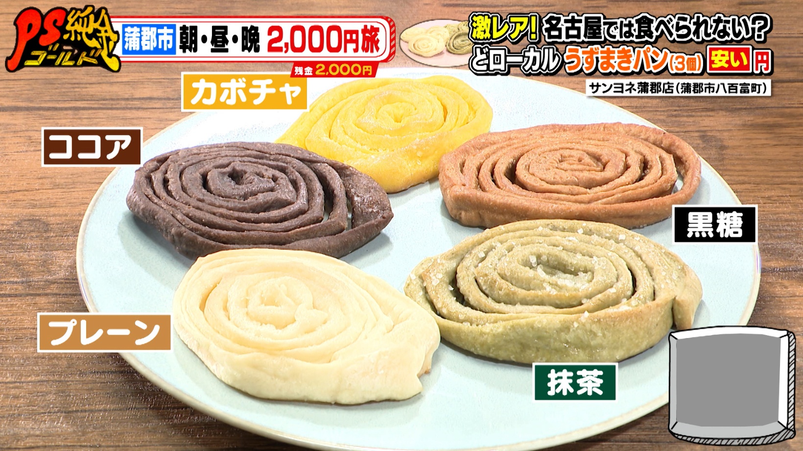 リポーターとして訪れたドランクドラゴン・塚地武雅さんは、「モチモチした食感。腹持ちがいい」と気に入った様子。うずになっているパンを伸ばしながら食べるのが蒲郡スタイルだそうです。